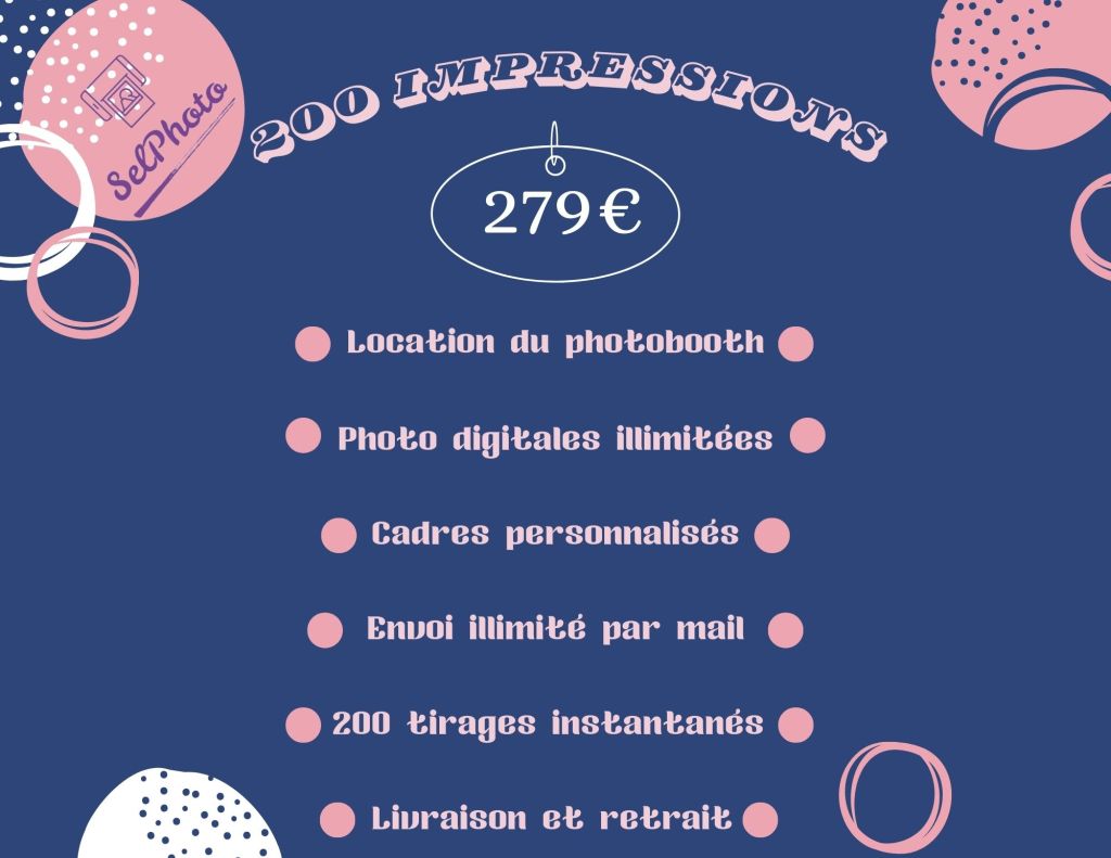 - Personnalisation : Lors de la réservation, choisissez votre cadre personnalisé parmi une longue liste qui vous sera remise. Ajoutez des noms, des dates, et des designs spécifiques pour rendre chaque photo spéciale.